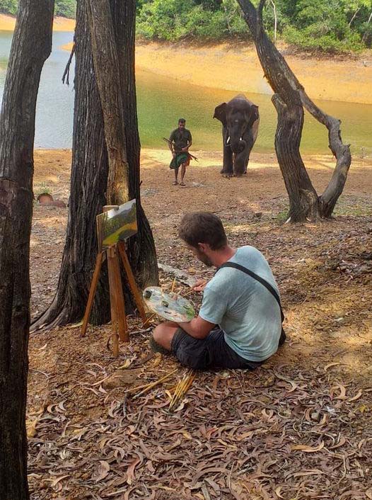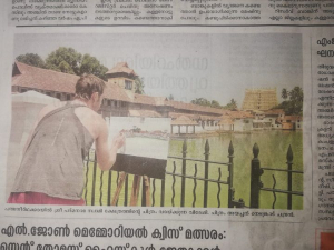 In 2019 I was invited to paint in South India by Mr. Biju Ramesh and Mr. Suresh Keehrti, whom I had met in Australia the previous year. They offered to sponsor my stay in Thiruvananthapuram and to organize an exhibition of my work. My paintings were exhibited at the Windsor Rajadhani Hotel, owned by Mr. Biju Ramesh.